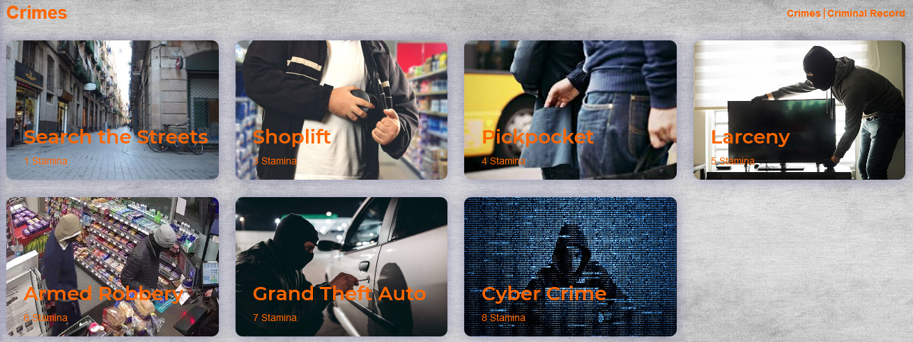 But they aren't the only ways you can develop. Join or create a crew to take part in group organised crimes, help fellow racerz by busting them from jail, get a job and earn a daily income along with other employment perks, develop your mind at the online university, risk it all at the local casino, buy & sell items for a profit in your own online store, collect bounties, travel the world, smuggle items around the world! The list is endless and constantly growing...
